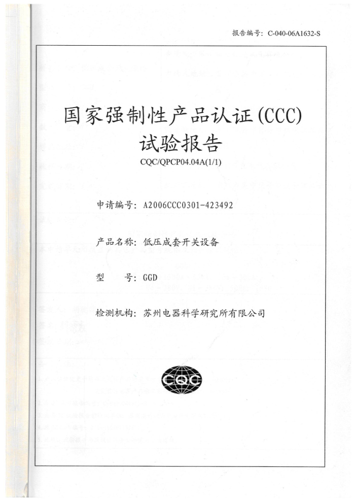 (成套)GGD主母線資質(zhì)證書