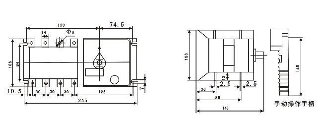 開(kāi)關(guān)外形及安裝尺寸
