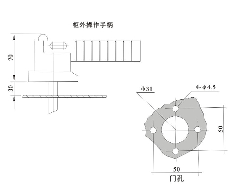 柜內(nèi)操作:手柄直接安裝在開關(guān)上。
