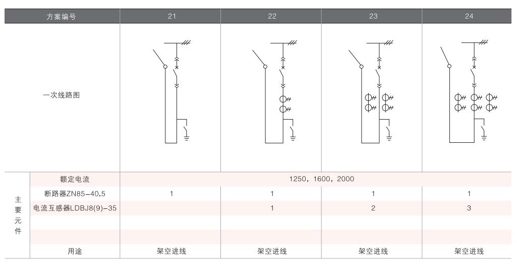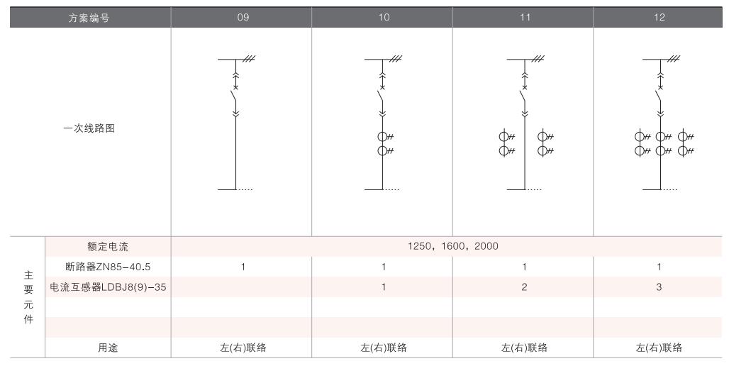 開(kāi)關(guān)柜的一次接線方案有27個(gè)常用典型方案,能滿足用戶電纜進(jìn)出線、架空進(jìn)出線,聯(lián)絡(luò)級(jí)測(cè)量、保護(hù)等的需要,若有不同與現(xiàn)有方案的其他方案的需要,請(qǐng)與廠方協(xié)商。