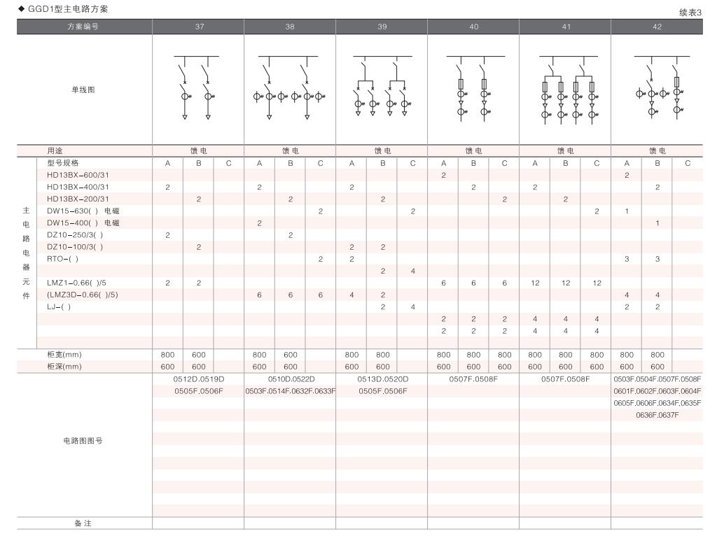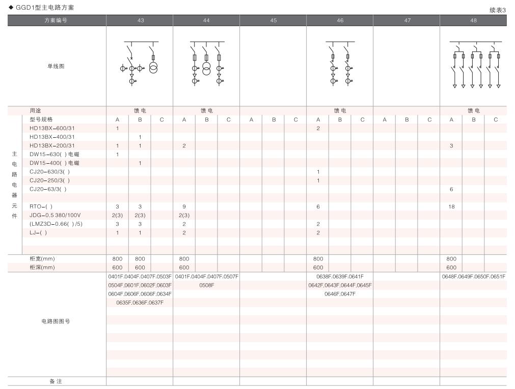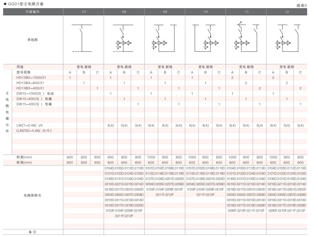 GGD柜的主電路設(shè)計7129個方案,共298個規(guī)格《不包括輔助電路的功能變化及控制電壓的變化而派生的方案和規(guī)格)。