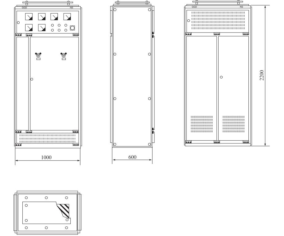 ◆GGD柜設(shè)計時充分考慮到柜體運行中的散熱問題。在柜體上下兩端均有不同數(shù)量的散熱槽孔,當柜內(nèi)電器元件發(fā)熱后,熱量上升,通過上端槽孔排出,而冷風(fēng)不斷地由下端槽孔補充進柜.使密封的柜體自下而上形成一個自然通風(fēng)道,達到散熱的目的。