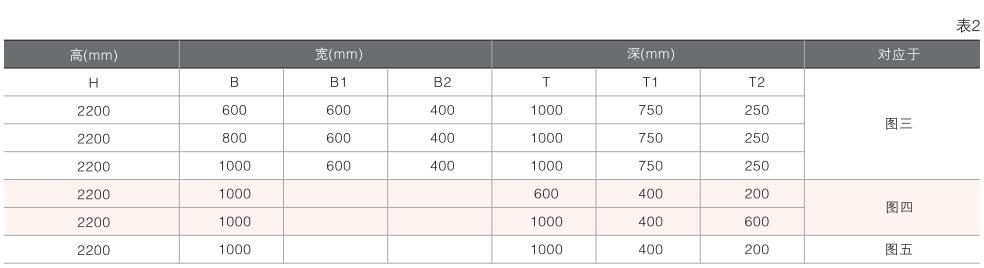 柜體按功能單元隔室、水平母線隔室和電纜隔室,見圖四,其尺寸見表2。